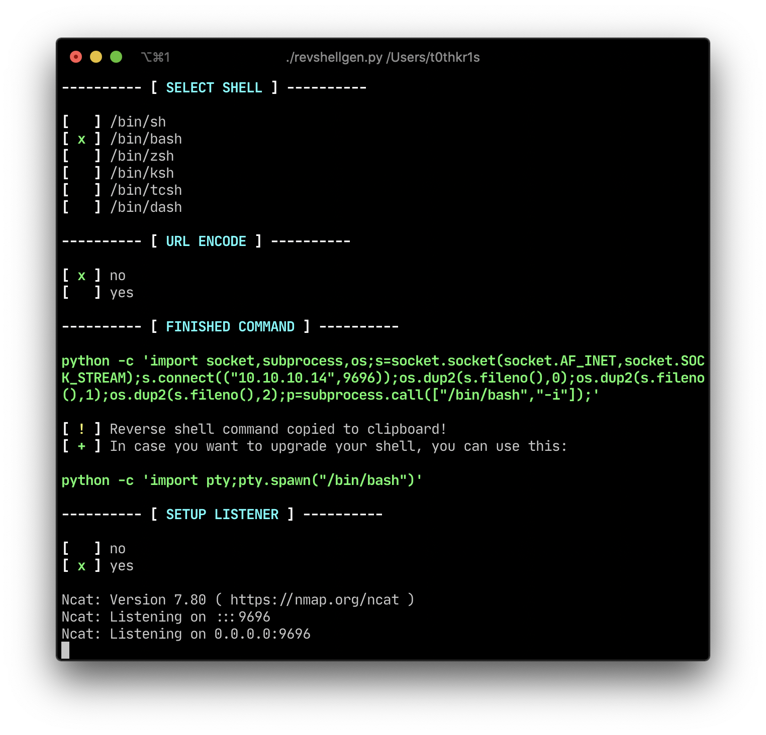RevShellGen now includes comprehensive TTY upgrade instructions. After catching a shell, the tool provides: