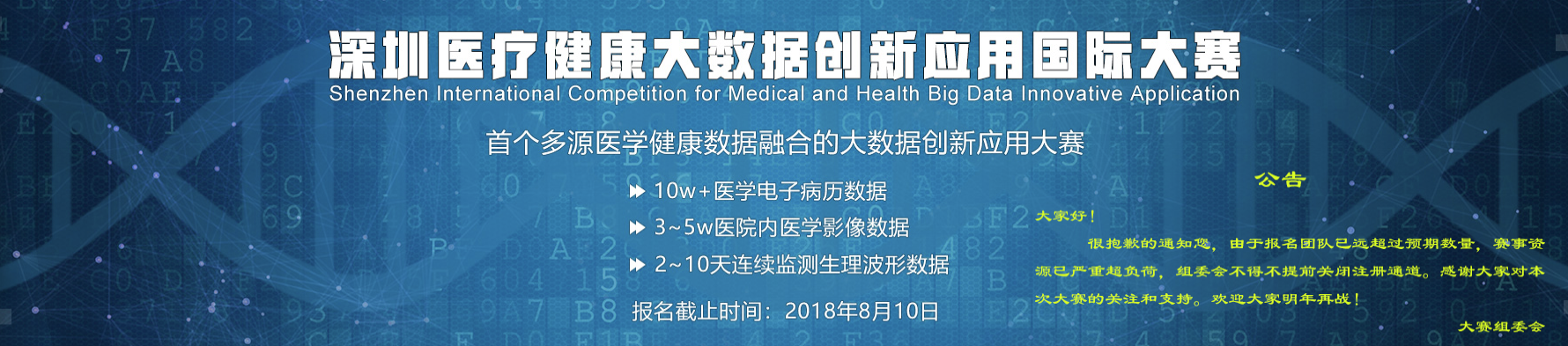 - 2018年国际大学生类脑计算创新应用大赛 | 深圳医疗健康大数据创新应用国际大赛