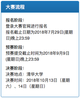 - 2018年08月08~10日:竞赛组委会公布获奖队伍名次,举行颁奖典礼及竞赛研讨会。
