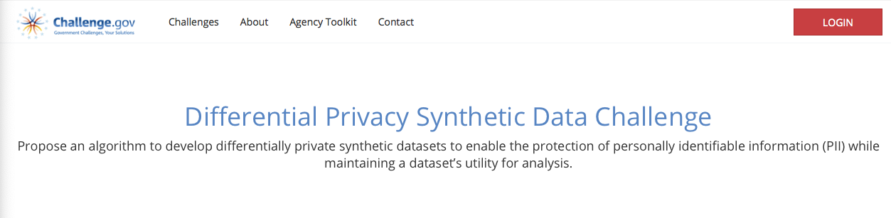 - NIST: Differential Privacy Synthetic Data Challenge (NIST: 综合数据差分隐私挑战)