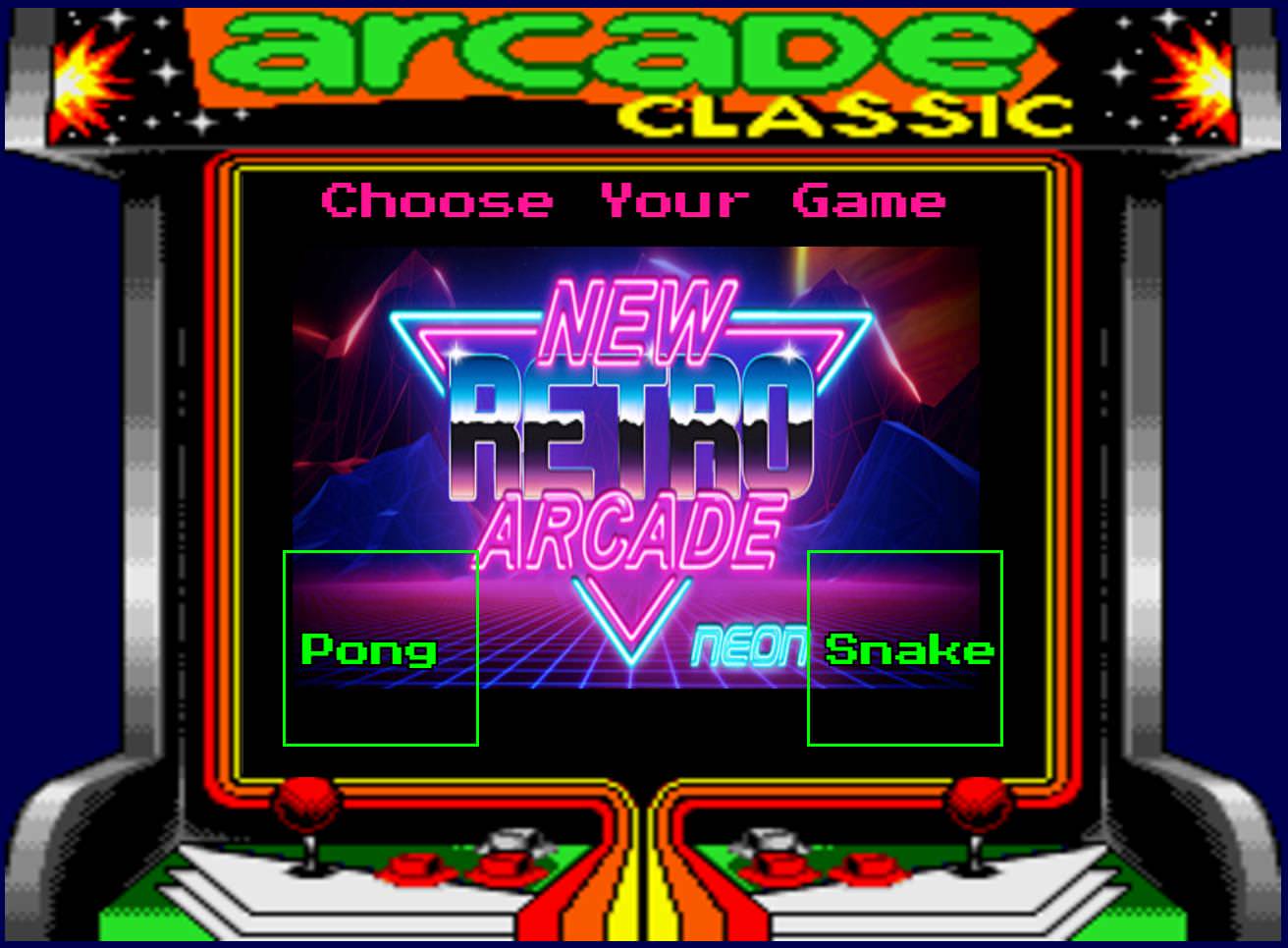 Retrocade is a retro-style arcade gaming app built with React. Currently only Pong and Snake are available, but additional games might be added in the future. Also, feel free to fork this repo and add games yourself.