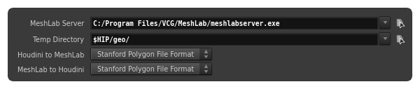 - To troubleshoot problems, create script in MeshLab manually and try to use meshlabserver directly. It is easier to break MeshLab than Houdini, so, if you have problems it may be useless to try to fix anything in asset.