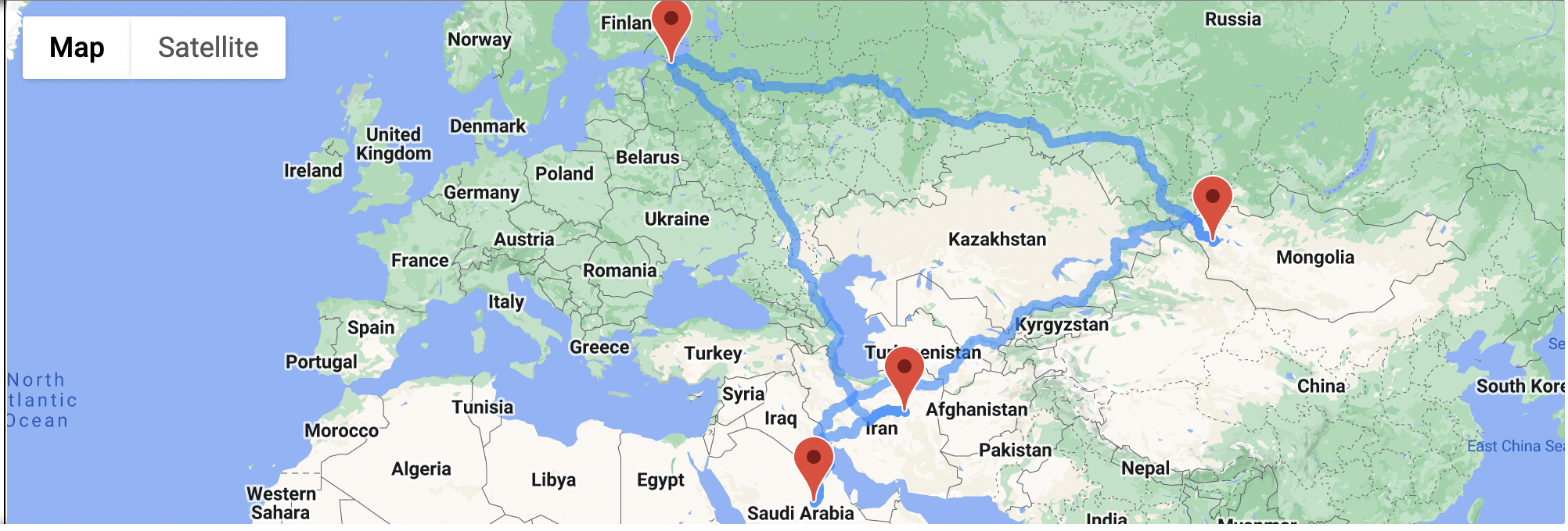 The results varied based on each location, but I selected four locations to be able to travel to: