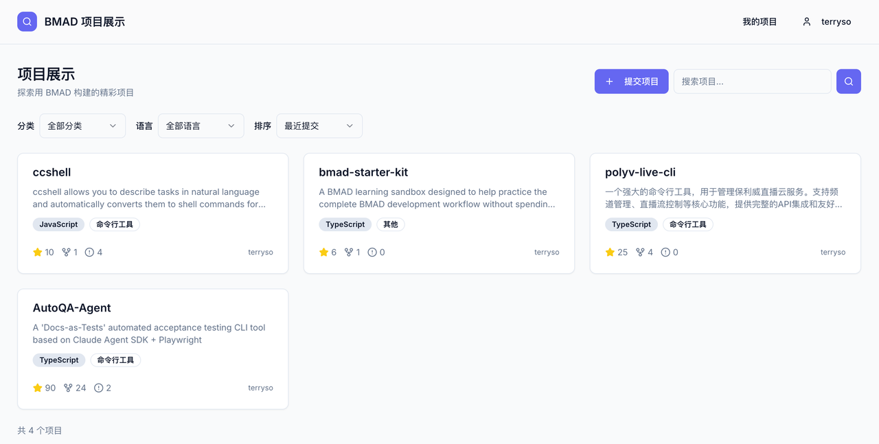 - BMAD Showcase - Browse and submit community projects built with BMAD