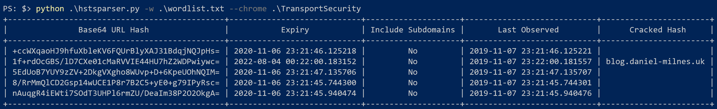 hstsparser -w wordlist.txt --chrome TransportSecurity