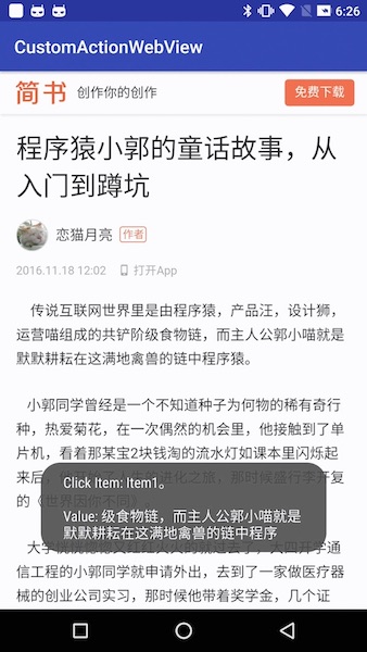 compile 'com.github.CarGuo:CustomActionWebView:v1.0.1'