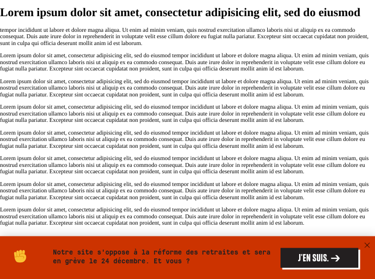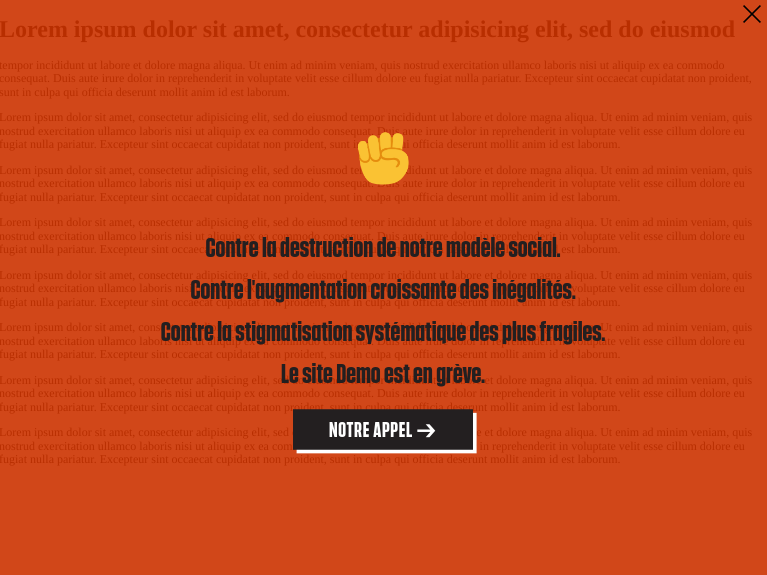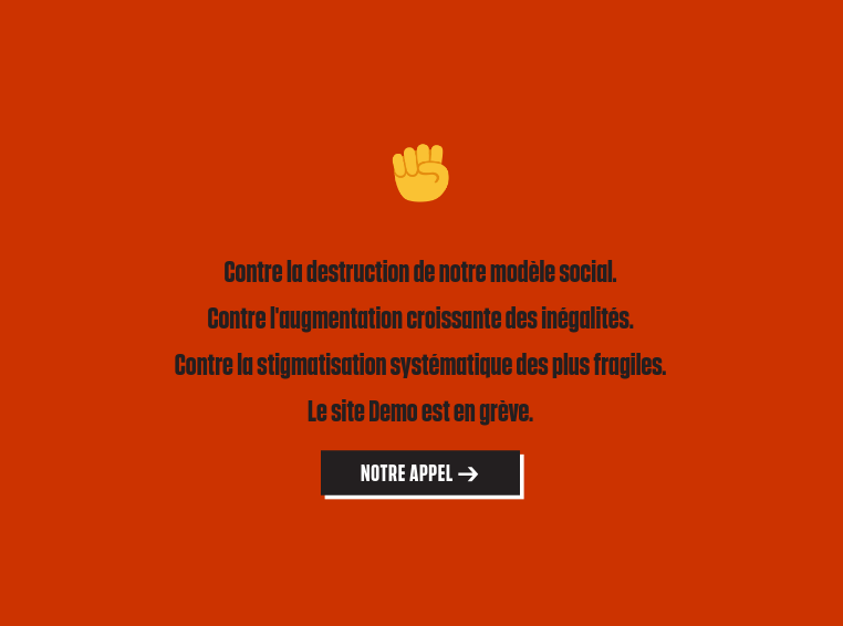 Je me suis alors rappelé que la Global Climate Strike avait déjà fait un projet de ce type, et ai plutôt décidé d'en faire un fork pour notre cause. J'ai donc repris le texte de strike-js, ai modifié le theming et quelques fonctionnalités, et voila le résultat :