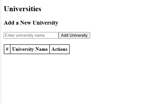 At this point, the HTML is set up, but the functionality isn't there yet. The buttons don't do anything, and the list doesn't display any data because universityList