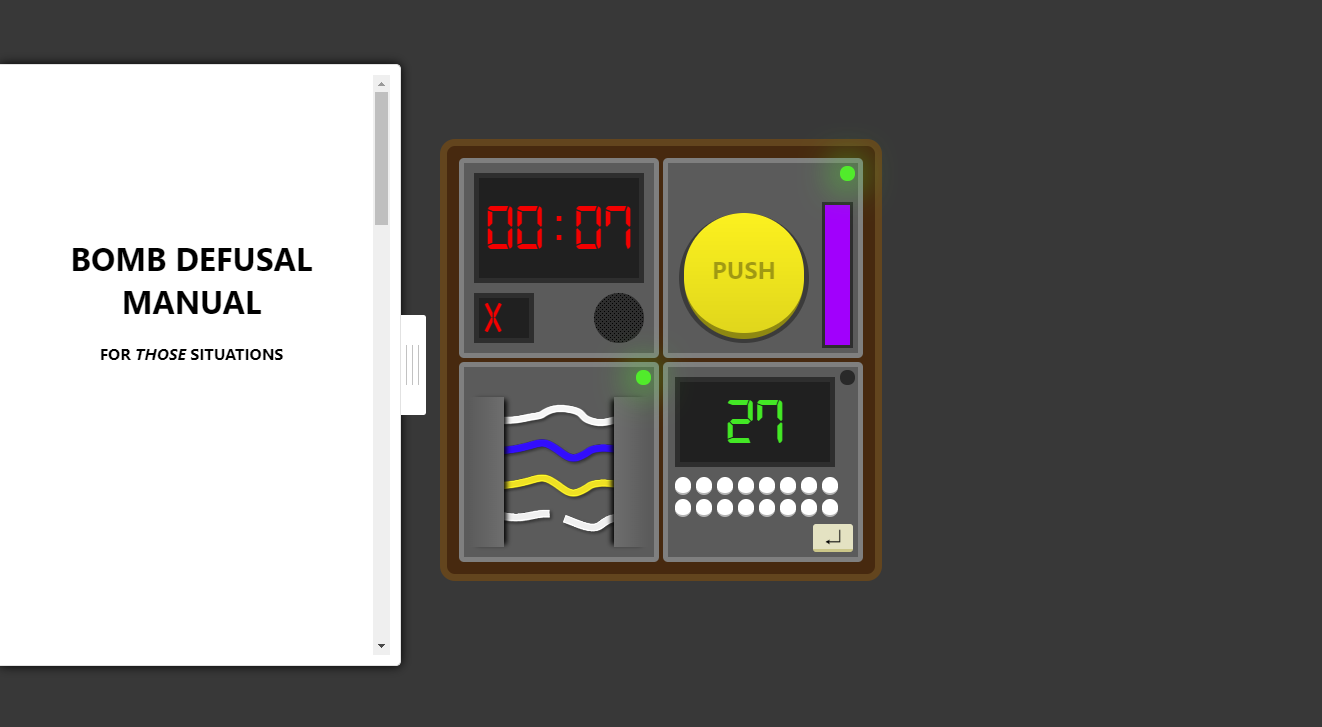 A singleplayer web-based take on the popular game Keep Talking and Nobody Explodes.