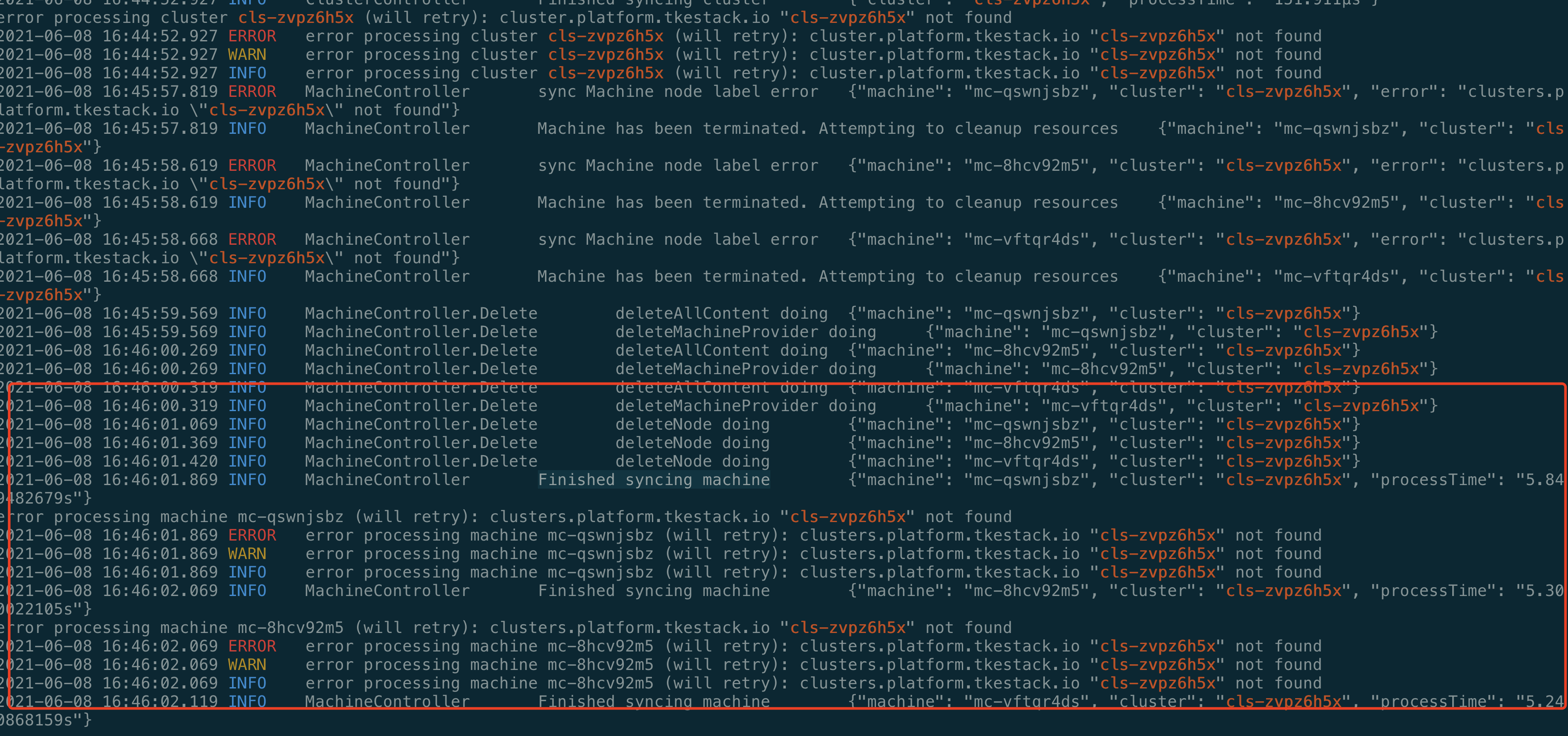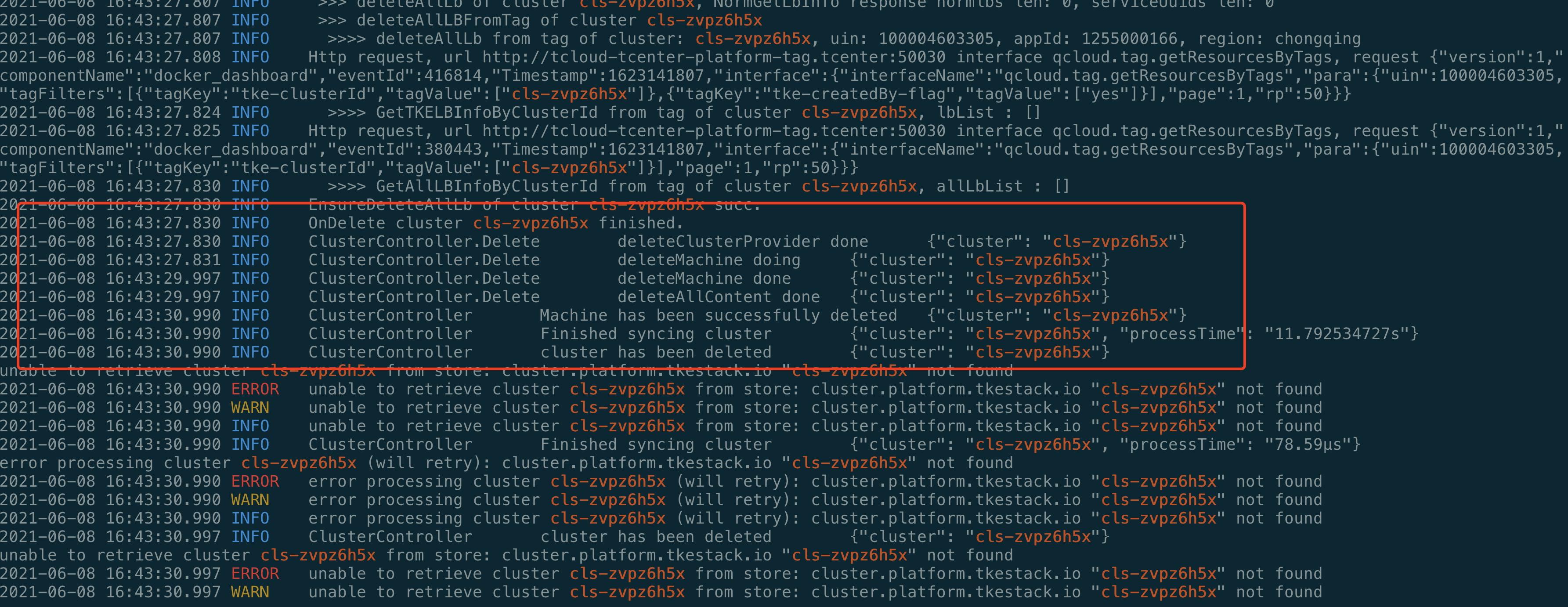 delete cluster maybe reproduce it