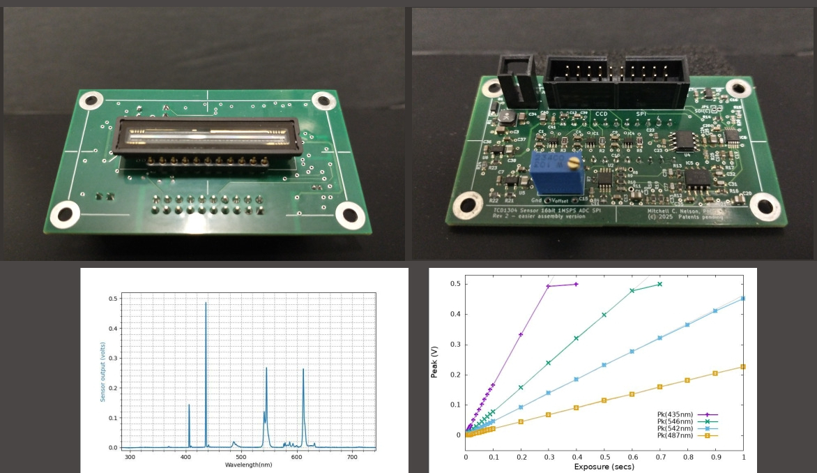 TCD1304 device with kicad, firmware, library and user app, designed for highly reproducible, linear response for precision photo-/radio-metric spectrometry and holographic imaging.