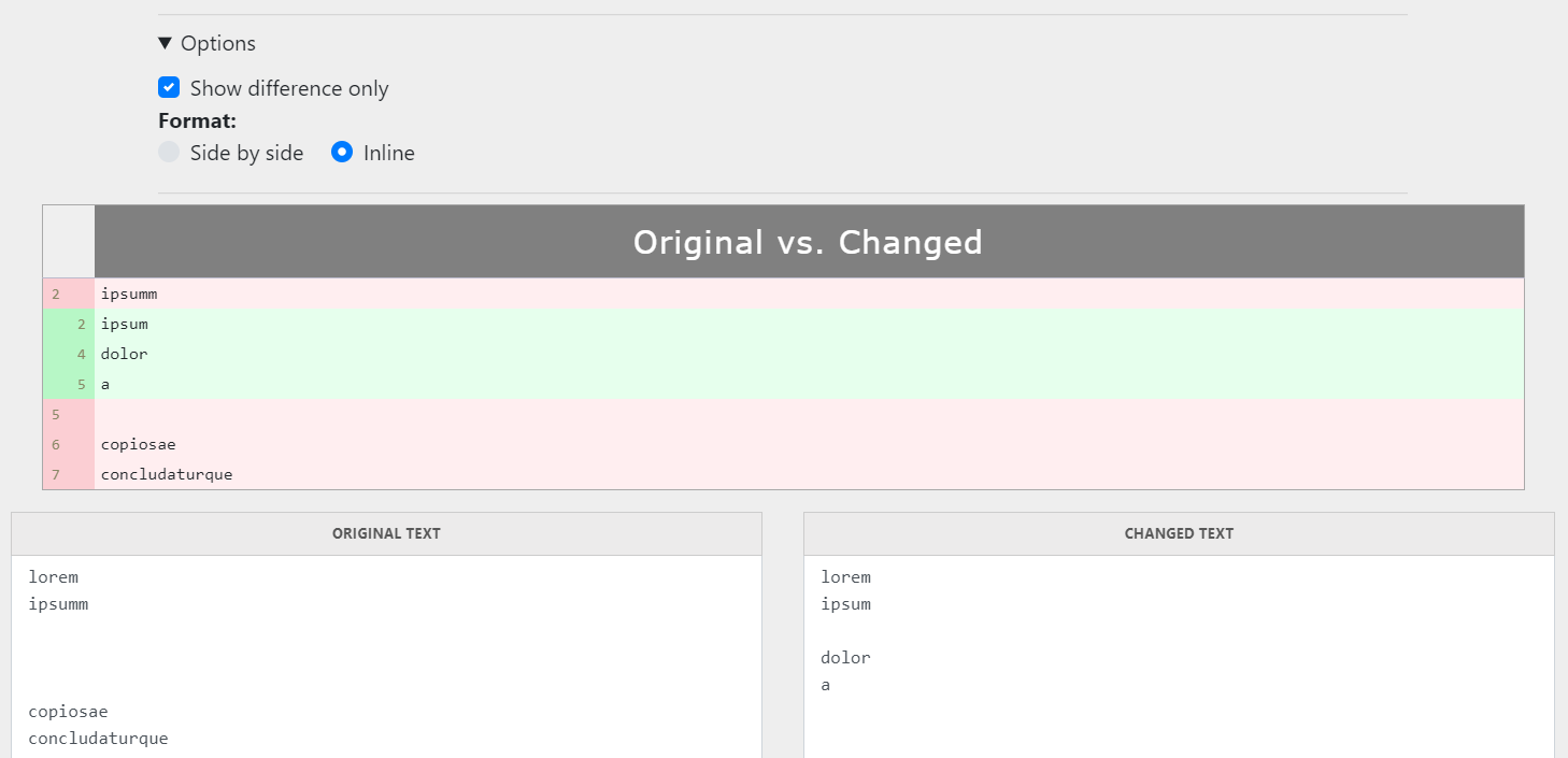 - Show difference only - choose if you want to display only difference or whole diff (with not modified lines)