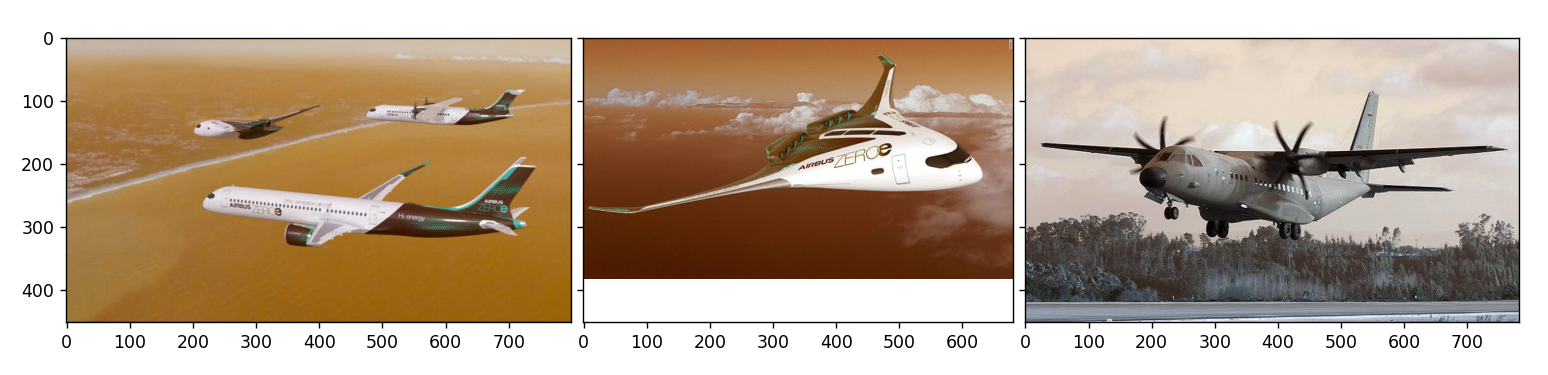 The first step of this script is to gather the 18 images, that were extracted from the internet. After the image collection phase, some of the collected images are shown bellow. It is possible to see that the images contain different number and types of airplanes.