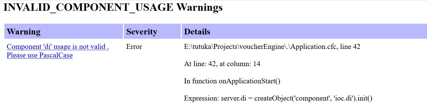we can avoid the invalid component usage by removing INVALID_COMPONENT_USAGE from cflintrc.