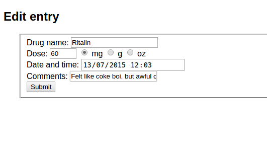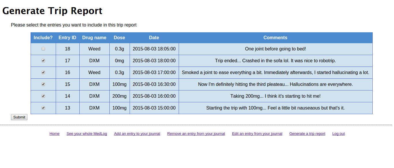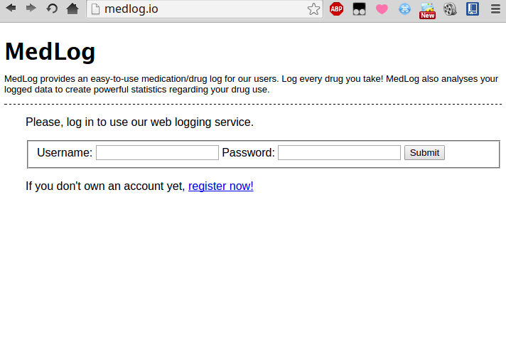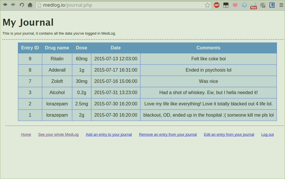 MedLog is a PHP application that, alongside a MySQL database, allows several users to register and have their own, private drug journal.