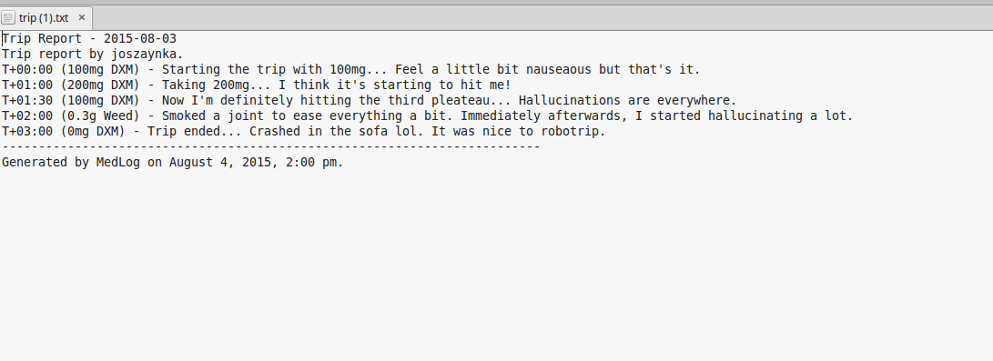 Downloaded TXT trip report: