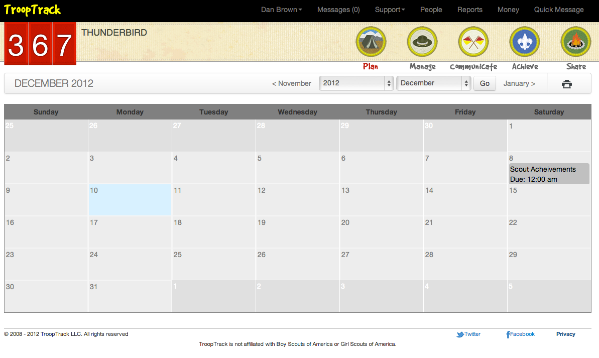 I recently upgraded TroopTrack from Twitter Bootstrap 1 to 2, redesigning a few key aspects of the site to make it more usable. Overall, I was very pleased with the results except for one area – the calendar. I was using a calendar gem that provided a view helper that generates a table based calendar. It worked okay in the past, but now that I had managed to get every other aspect of my site scaling nicely for display on tablets, the horizontal scrolling caused by the rigid table layout was more than I could bear.