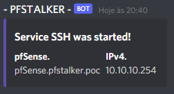 If pfstalker restart SSH service on pfSense firewall, this alert is send.