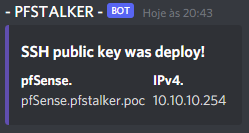 Supervises pfSense SSH service status and admin credentials, deploy SSH public key and sends alerts through Telegram and Discord webhooks.