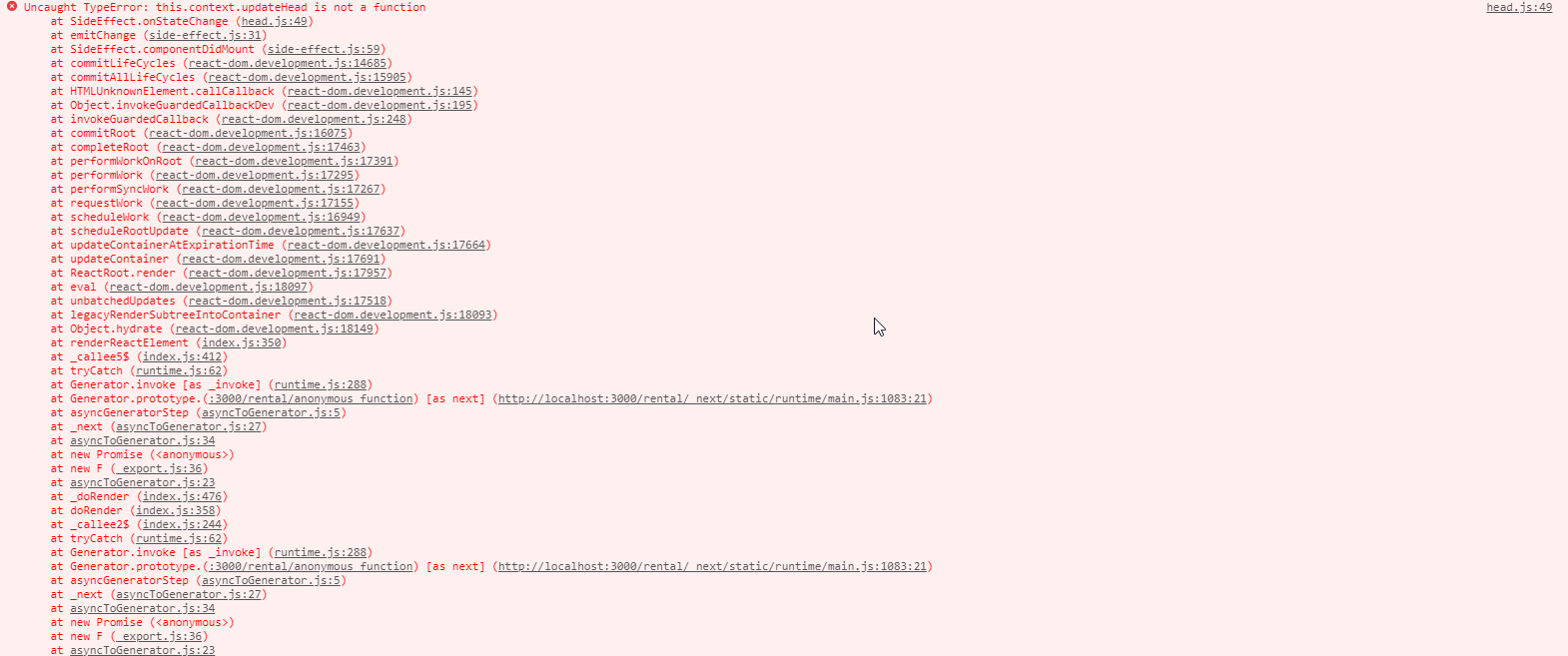 Hello. I`m trying to upgrade nextjs version 7.0.2 to 8.0.0-canary.12. It seems like works correct and even page is loaded but then in few seconds i get this error:
