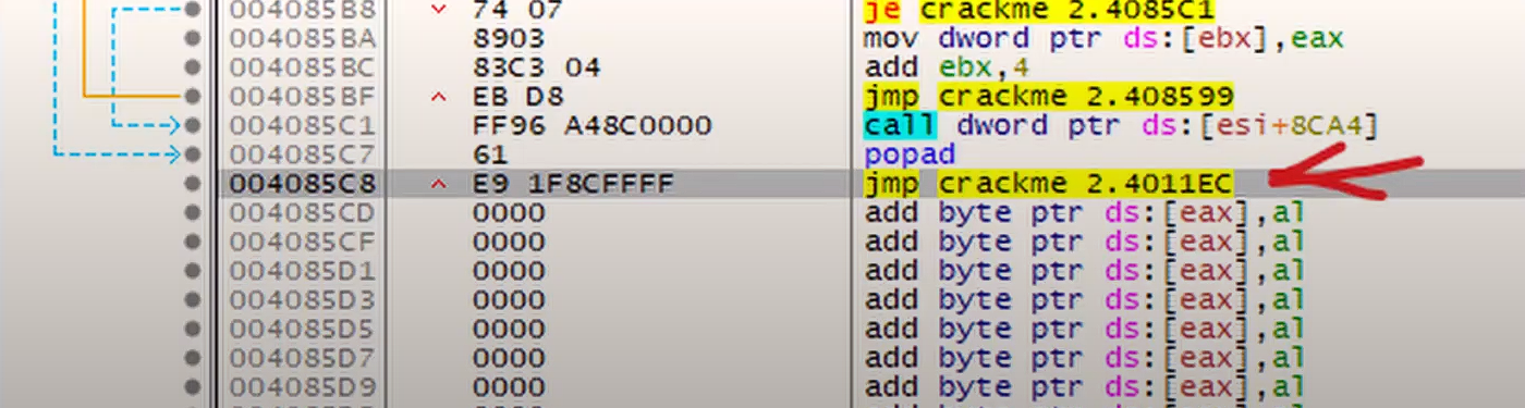 64dbg ile obfuslanmış dosyanın içerisine f2 ile debug moduna geçiyoruz.