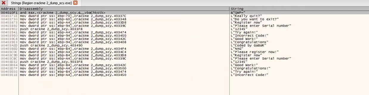 hata ayıklayıcı aracılığıyla mevcut tüm string referanslarını kontrol ederek bu komutu yürütebilir korumayı aşarak bu stringleri arayabilir ve editleyebiliriz, eğer rastgele bi keyi programa yazarsak muhtemelen hata verecektir.