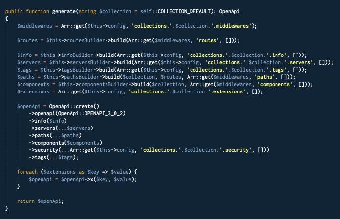 I'm currently using a third party Laravel library in quite a few projects that allows me to essentially abstract out how models, relationships and ultimately API endpoints/routes are defined - in what are essentially config files. The project is https://laraveljsonapi.io As information about what is considered an acceptable request body, expected response body, relationships etc is already well known, and more importantly, is very strictly defined - we can avoid the effort of manually describing each model, relationship, endpoint etc and through the use of Laravel Magic™, automatically generate this documentation. Very useful when working on projects with anywhere from 10 to 300 distinctive programmatically defined endpoints(!) to audit what's actually available (and if it can be pruned!) A side bonus of this is that it creates time to write the docs for endpoints that aren't using that JSON:API package.