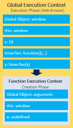 对于函数调用, JavaScript 引擎将创建一个函数执行上下文(Function Execution Context