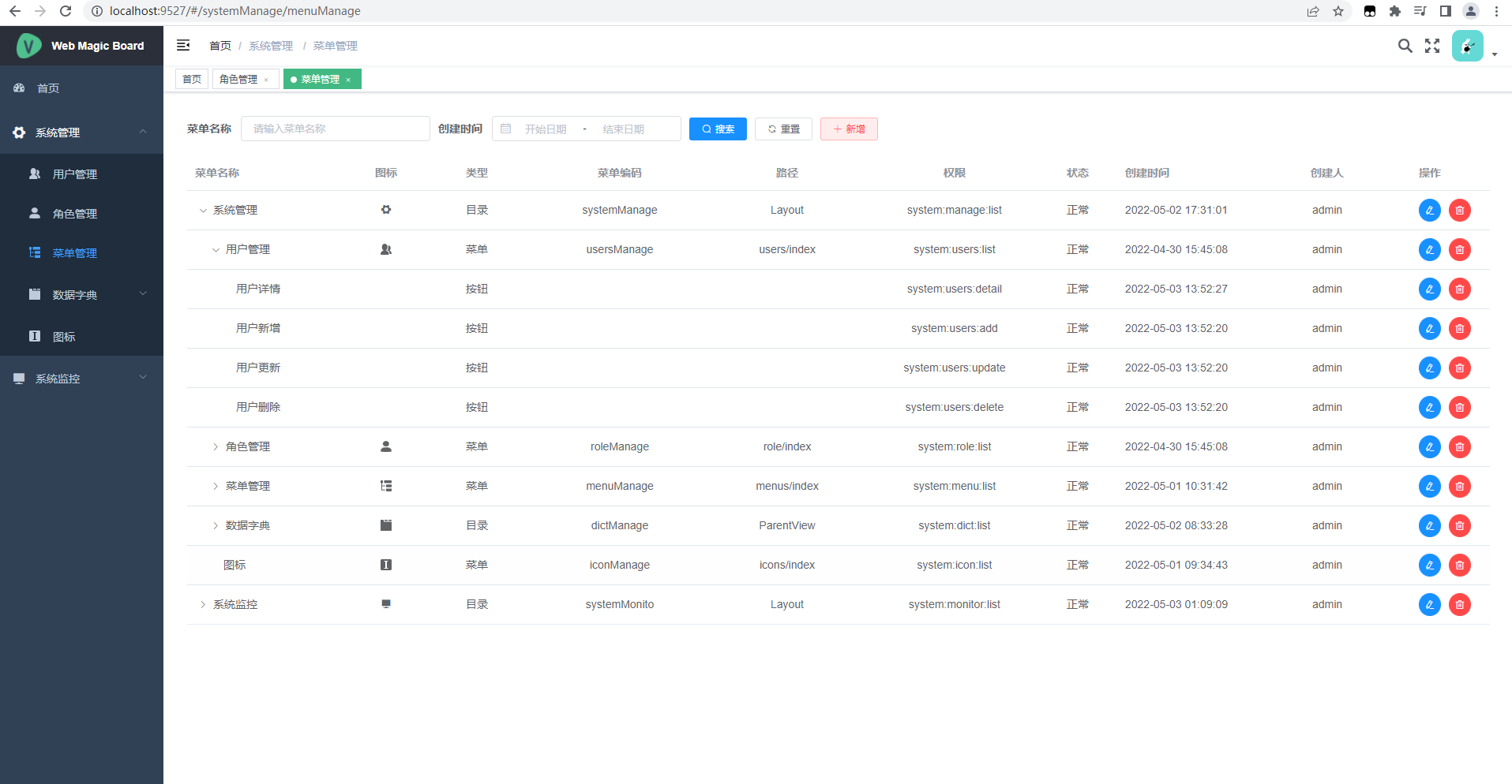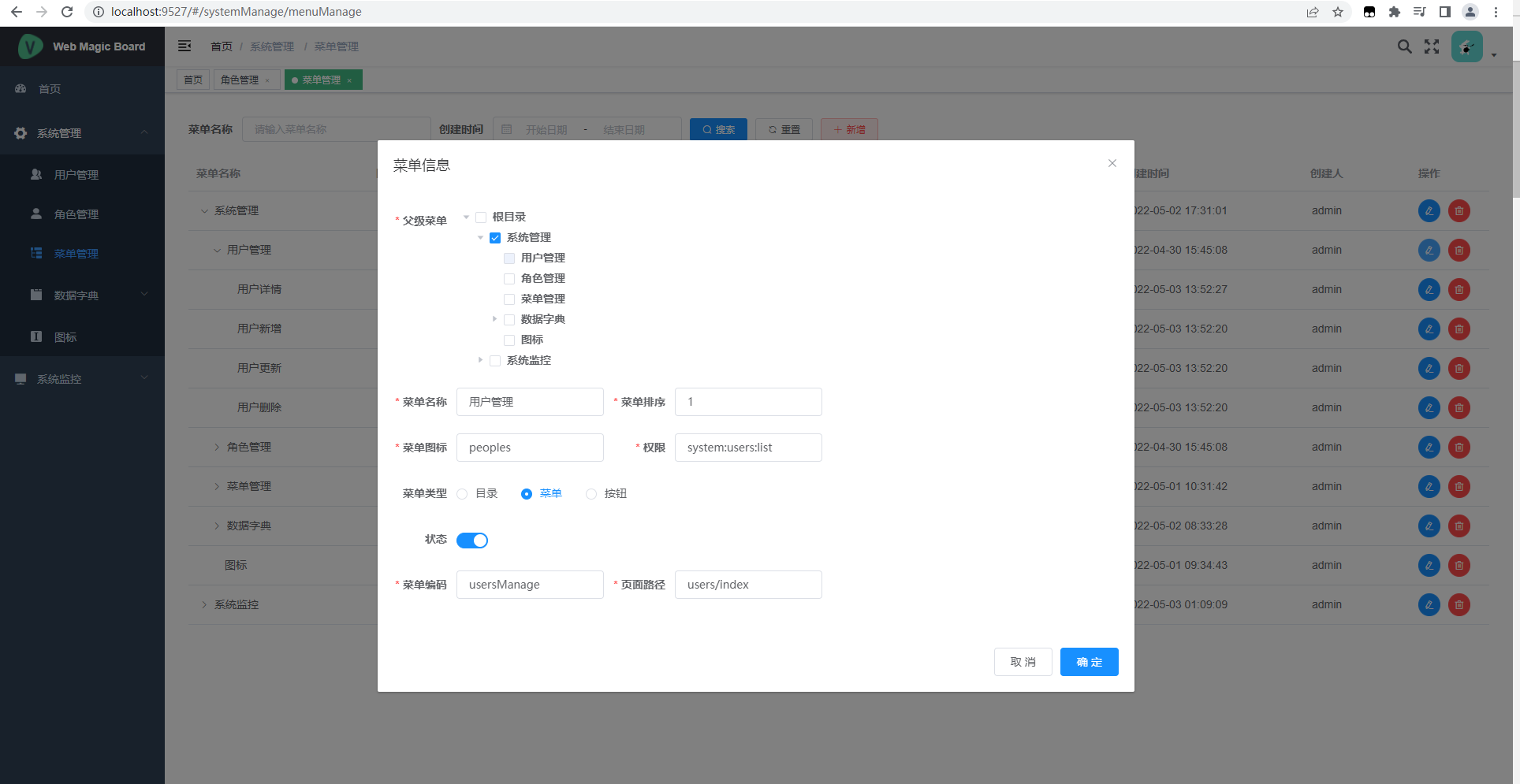 前端项目使用的是开源的element-admin,前端项目地址:WebMagicBoard