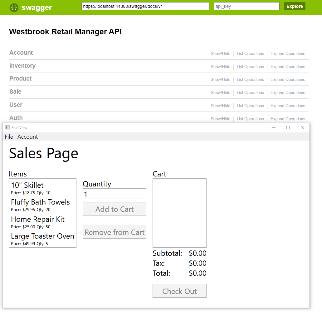 My retail manager personal project was originally based on a tutorial series by Tim Corey called "TimCo Retail Manager". The project started in .NET Framework with a WPF application, ASP.NET Web API, and SQL Server with Dapper.