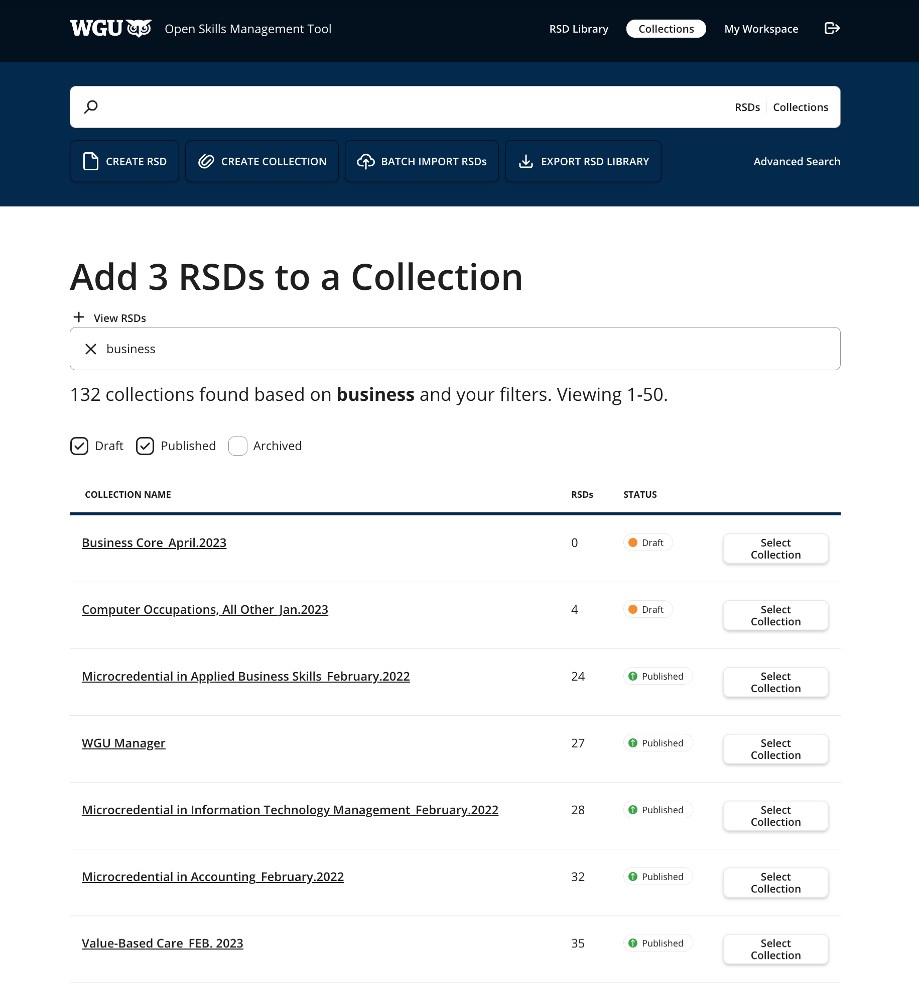 As an OSMT user, I would like an option to view search results for collections in order of relevancy based on the search word(s) entered and should only search within the collection name.