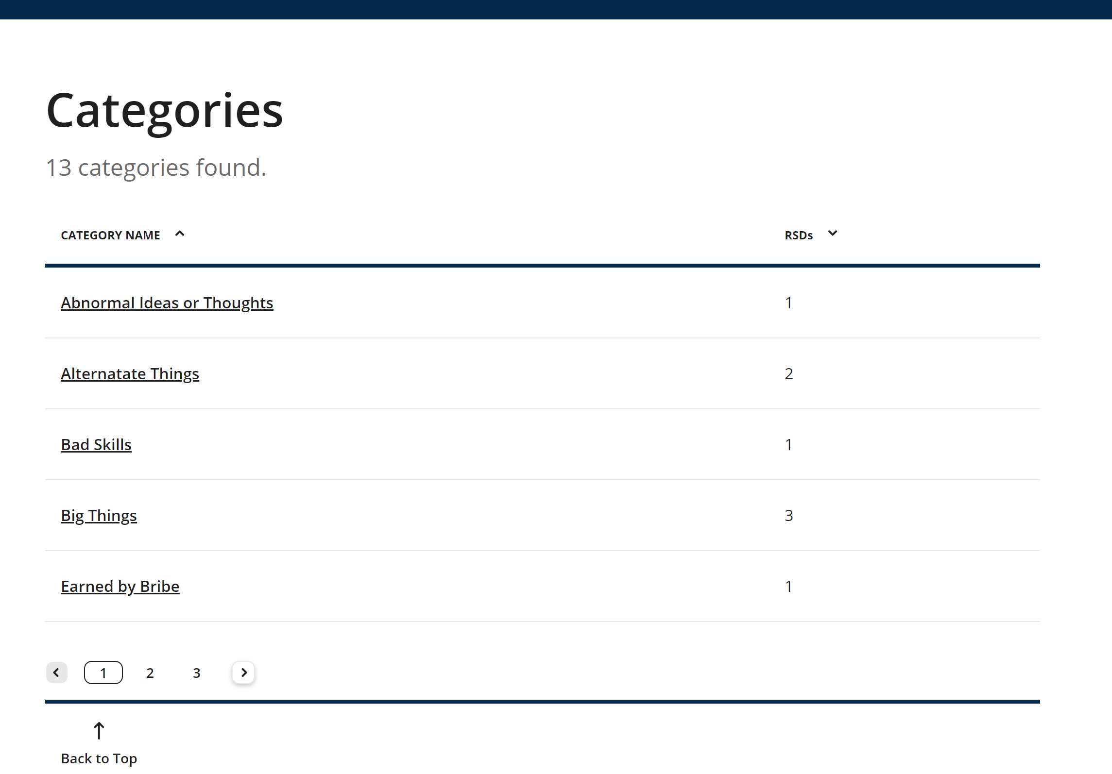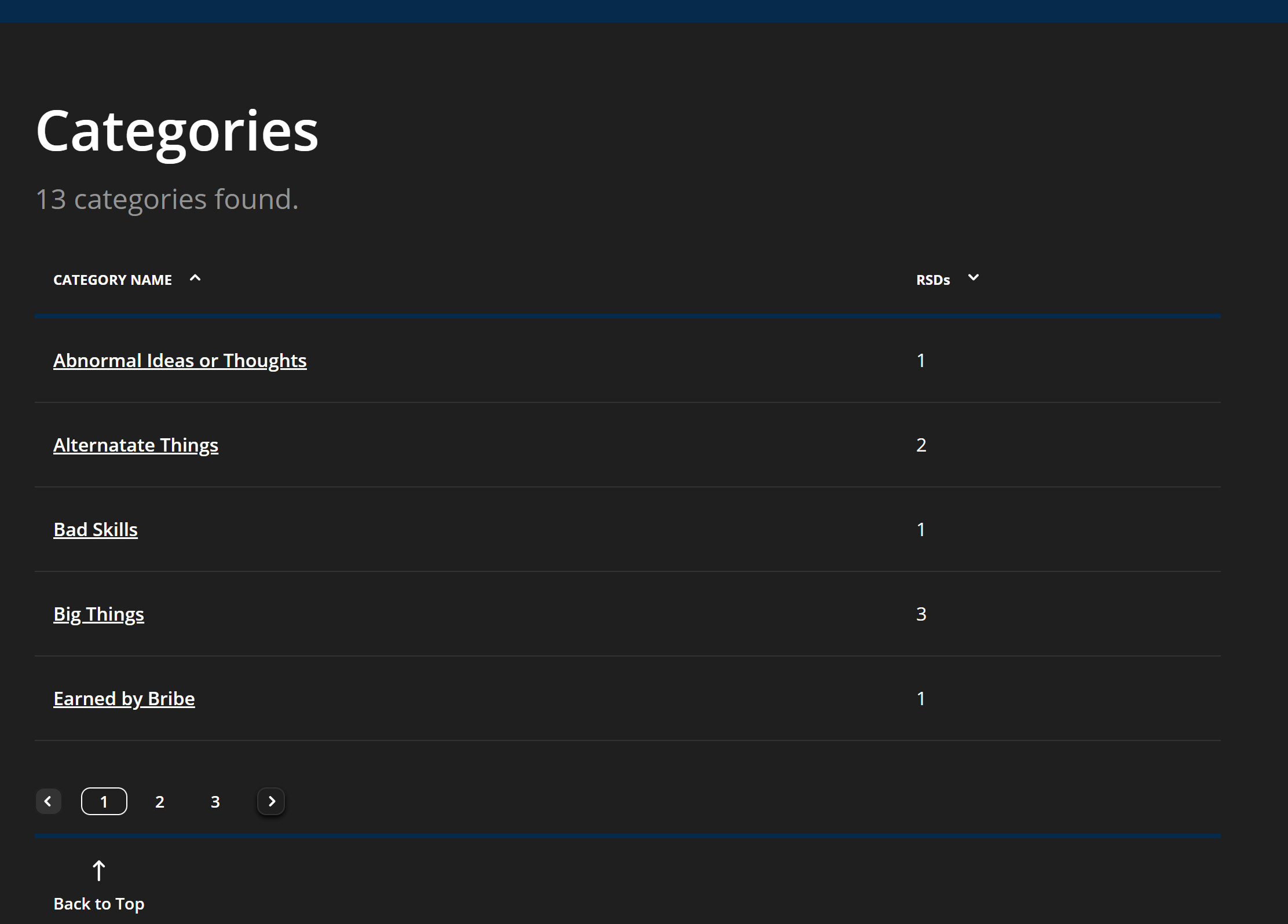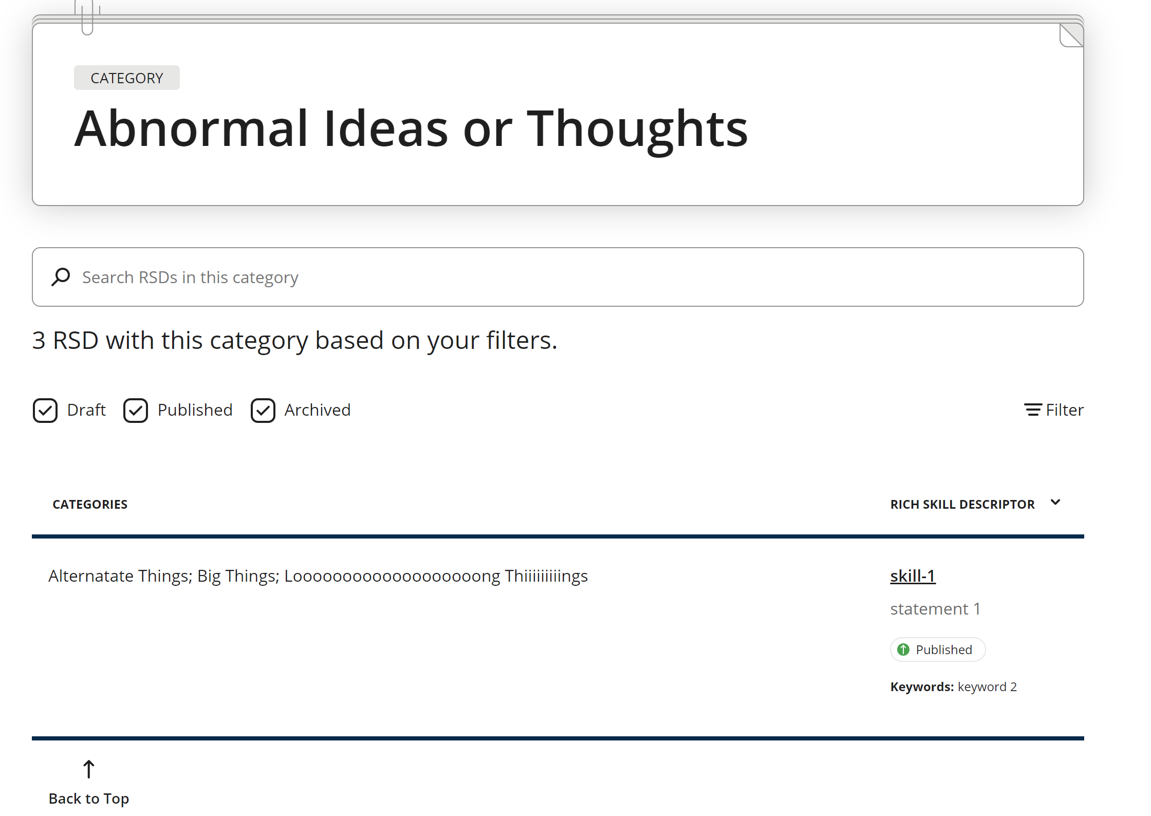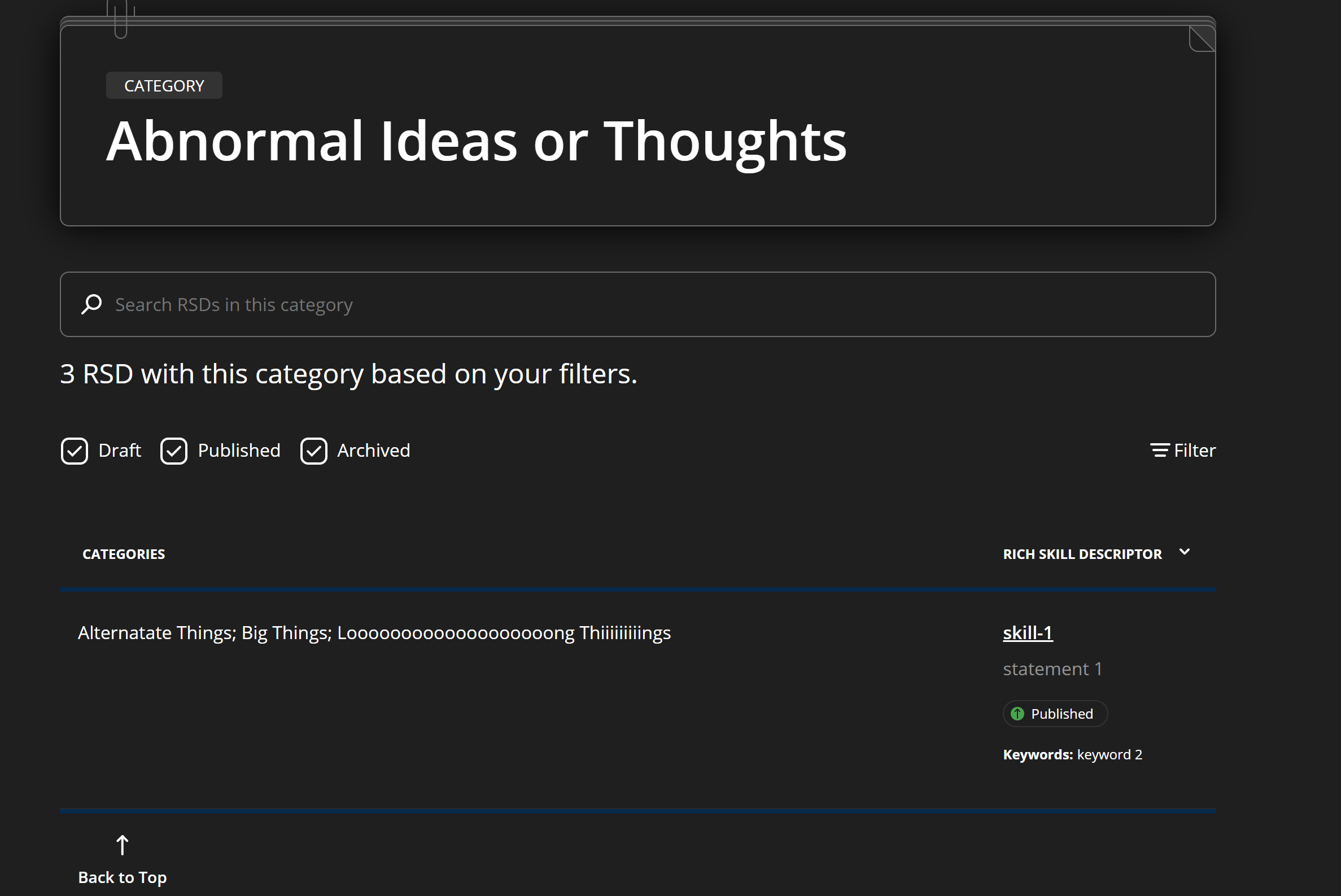 KeywordControllerto provide Category records. Could be enhanced in the future to provide all Keyword types.Created Category detail page to display and allow querying of RSDs that have Catetgory.