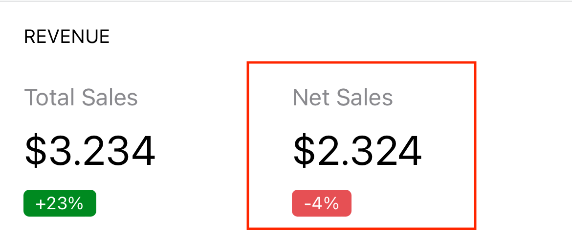 This PR adds methods to retrieve and format the net revenue value and delta used for the "Net Sales" column on the Revenue Analytics card: