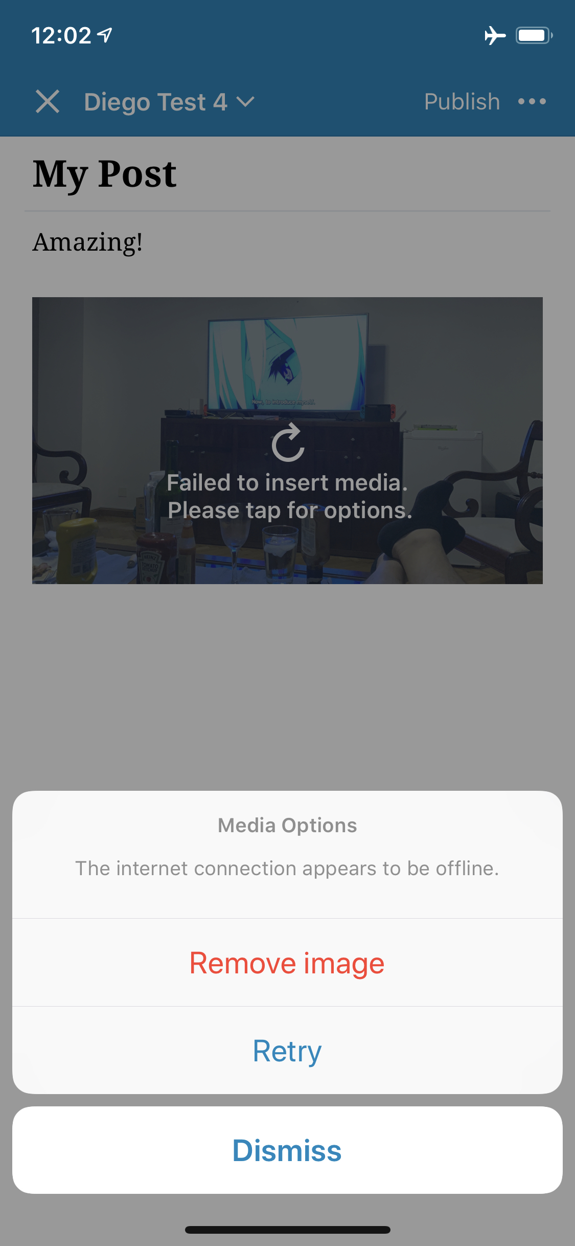 Failed media upload overlay is a bit scary:  iOS version looks better:  We should add the same message under the retry icon.