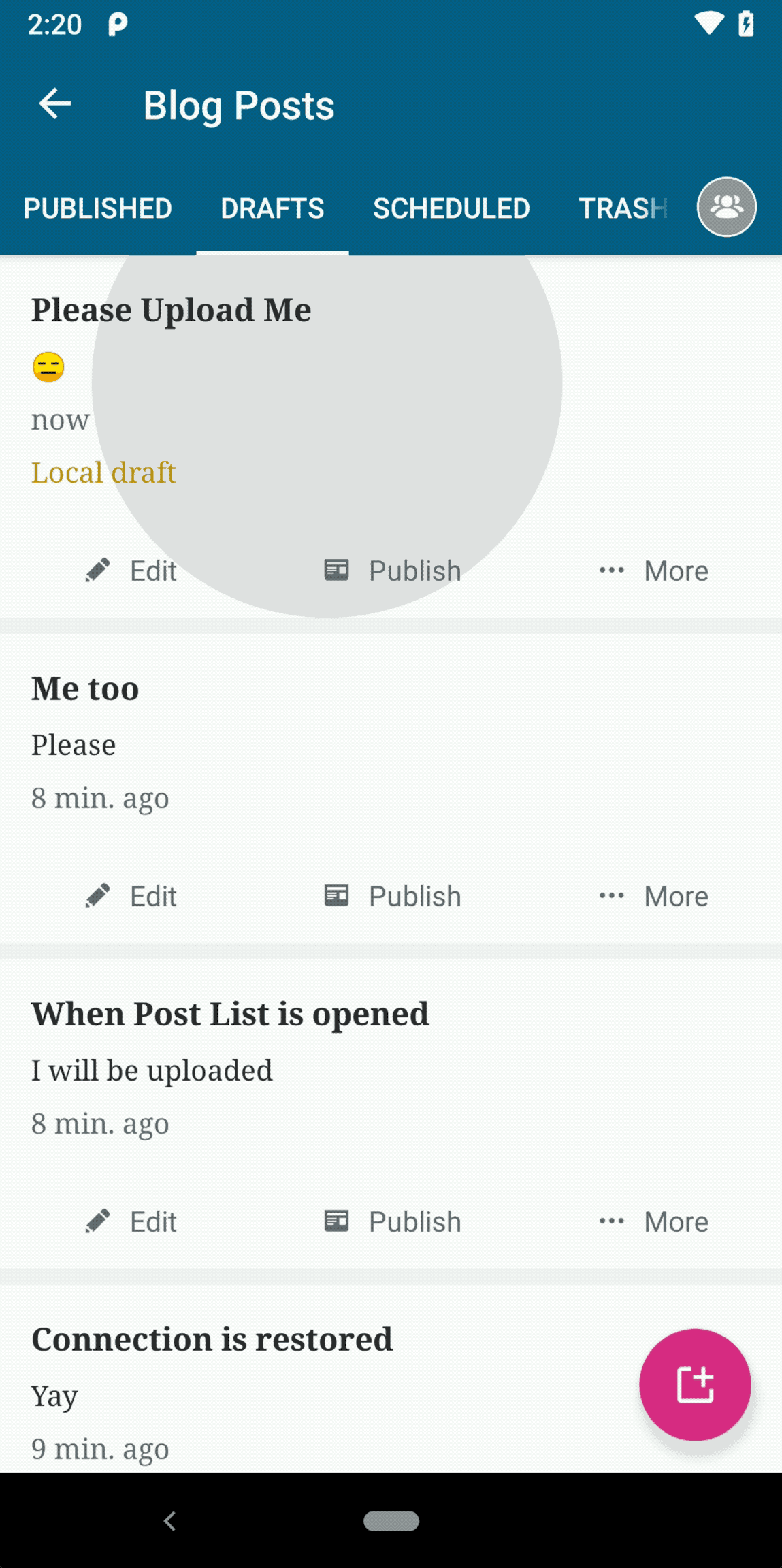 | val localDrafts = postStore.getLocalDrafts(site) | ||