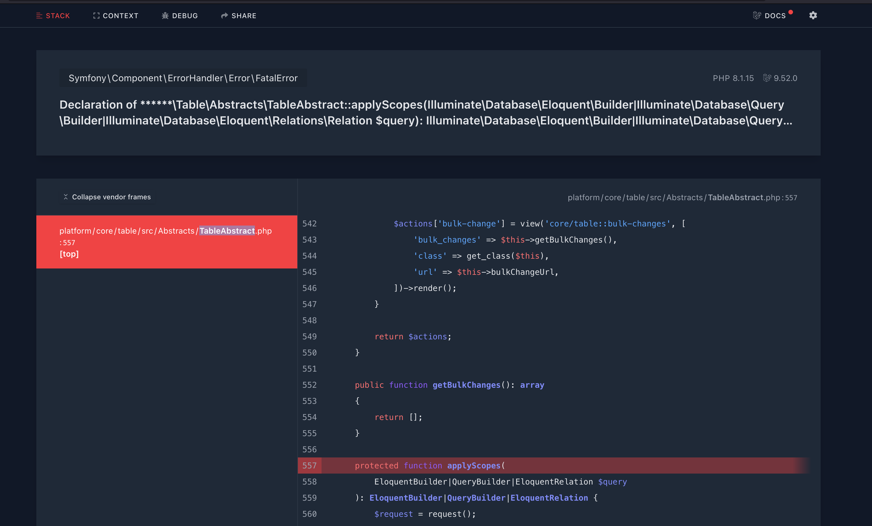 Hello @yajra, This is a breaking change. Many clients will be 500 errors caused by this PR. Why you accepted a change to the signature in 1 minor version? 🥹 |