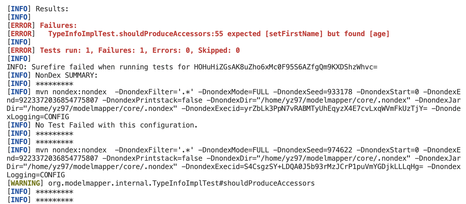mvn install -pl . -am -DskipTestsmvn -pl core edu.illinois:nondex-maven-plugin:1.1.2:nondex -Dtest=org.modelmapper.internal.TypeInfoImplTest#shouldProduceAccessors