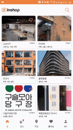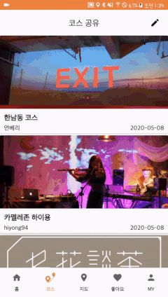 내가 직접 다녀온 장소들을 코스로 만들어 등록하고 사용자들과 공유 - 좋아요