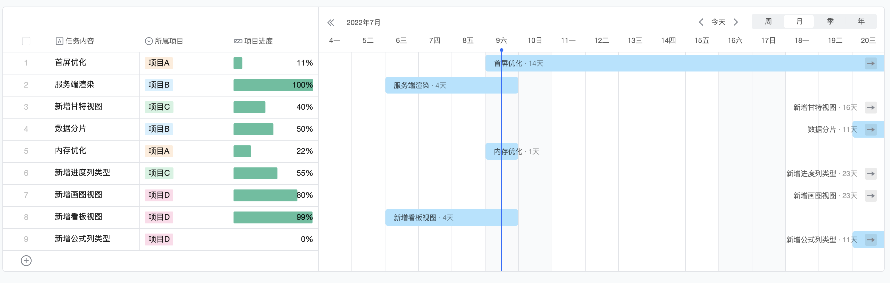 智能表格是一种拥有多视图的新型表格,它本质上是一个在线数据库,拥有更丰富的列类型和视图,一份数据多种维度展示,目前已经有表格视图、看板视图、画册视图、甘特视图、日历视图等。