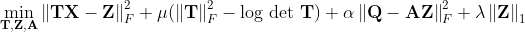 where X is the training data matrix, Q is the ideal representation matrix, A is a matrix that transform the learned coefficients to Q, T is the learned transform matrix and Z is the learned coefficient matrix.