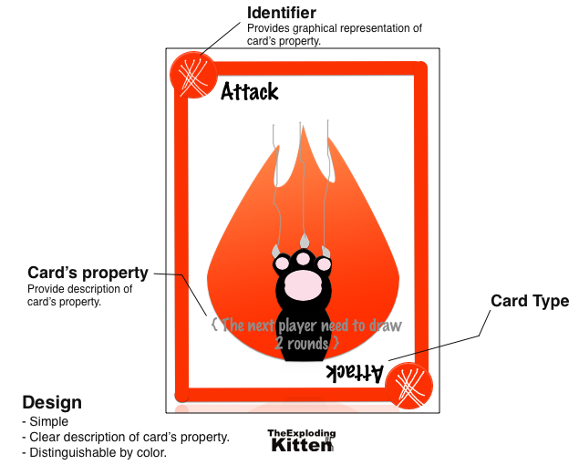 This game allows player to play with the a virtual player. Each player take turn to to play their cards. The player can play as many cards as he/she wish but he/she must end the turn by drawing a card from the drawing pile. The player who got the exploding kitten will lose.