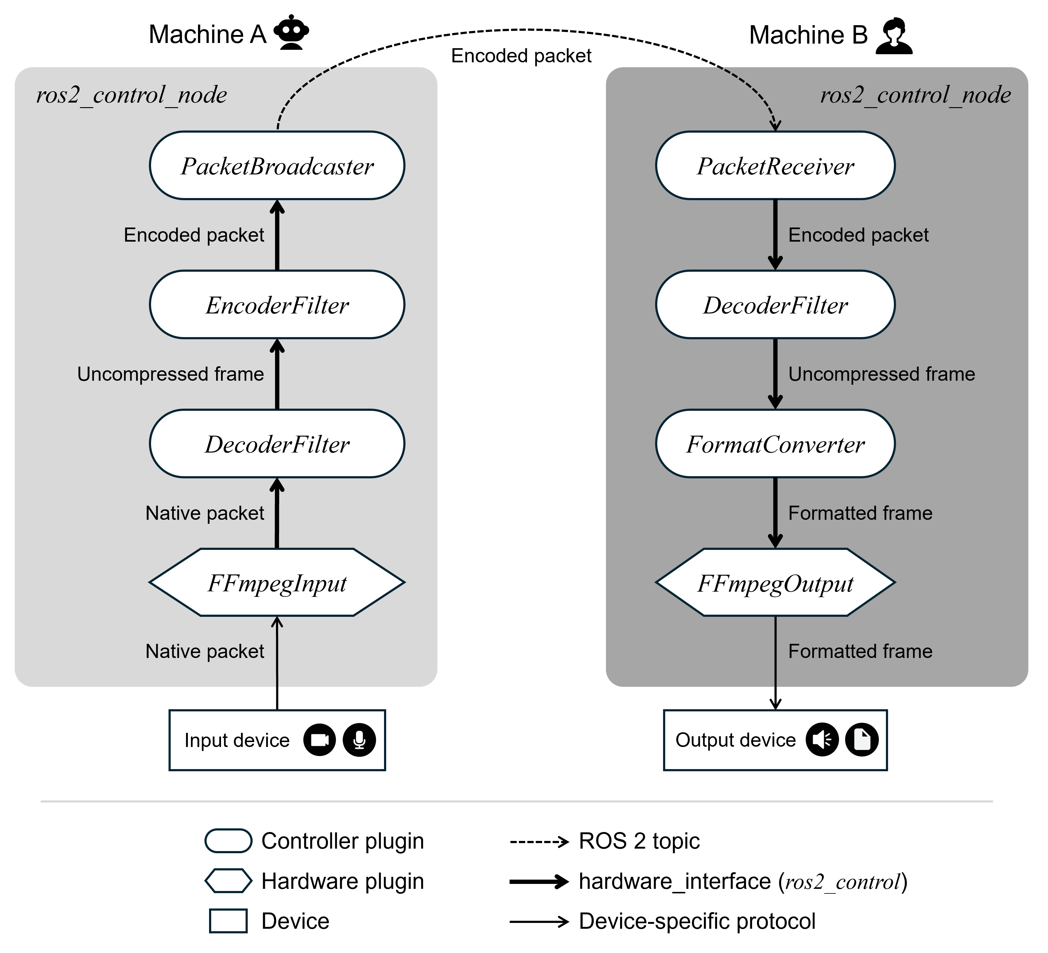 - Flexible composition of input/output and pre/post-processing (encoding/decoding/conversion) by combining desired hardware and controller plugins.