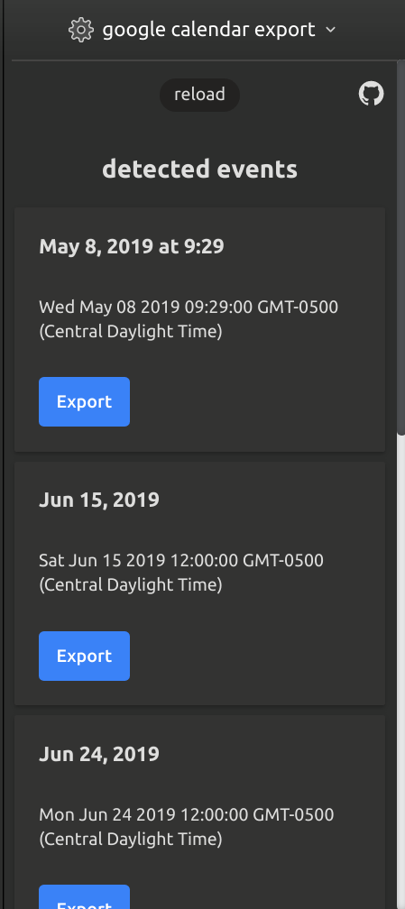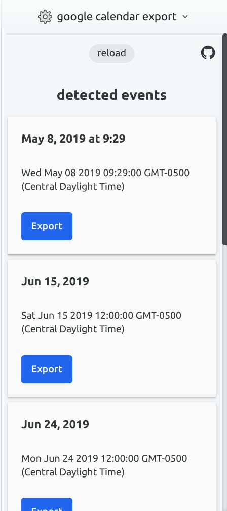 Adds an integration to the Missive mail app that parses emails for dates/times and displays them to export to Google Calendar if desired. Clicking the export button will automatically open Google Calendar's "New Event" page and allow you to customize fields' content.
