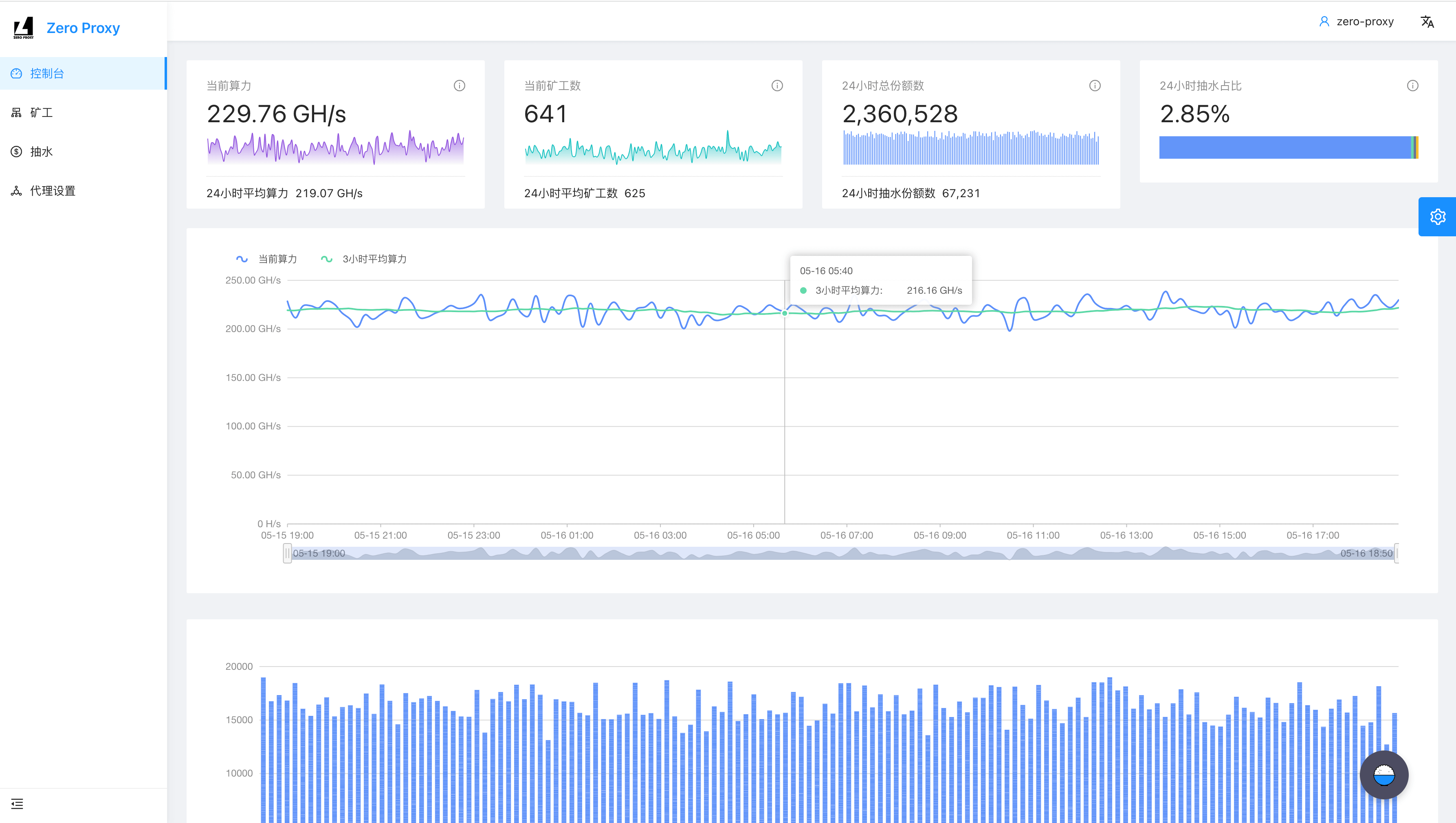 - 我自己部署 Zero Proxy 后,用户矿机接入多久后,我才能在控制台中看到抽水?