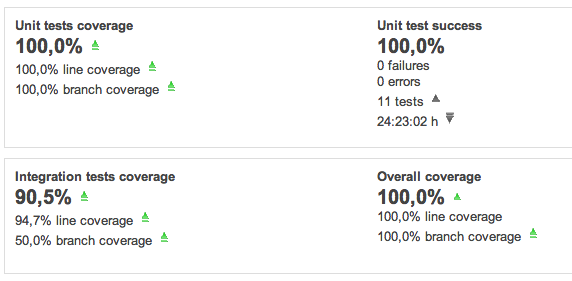 - PMD, findbugs, checkstyle integration via Maven, reported in Sonar.