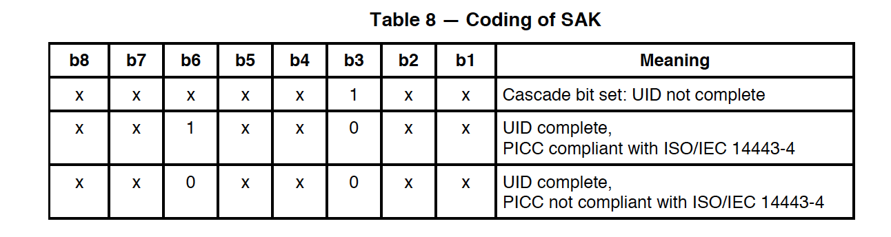 Bit 3 is cascade bit indicates that UID is not complete and additional select needed.